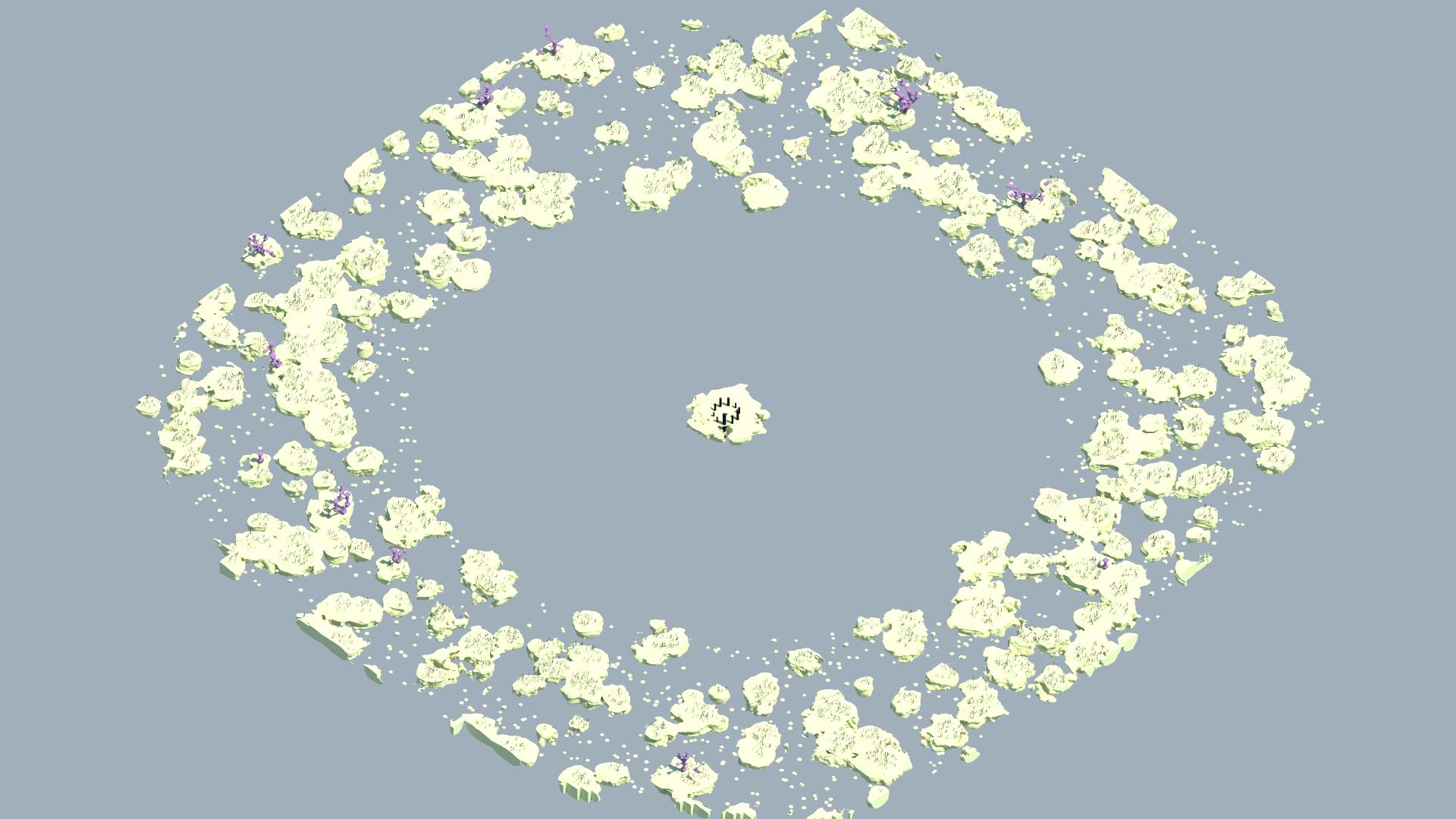 As ilhas externas do End estão agrupadas ao redor da ilha principal.