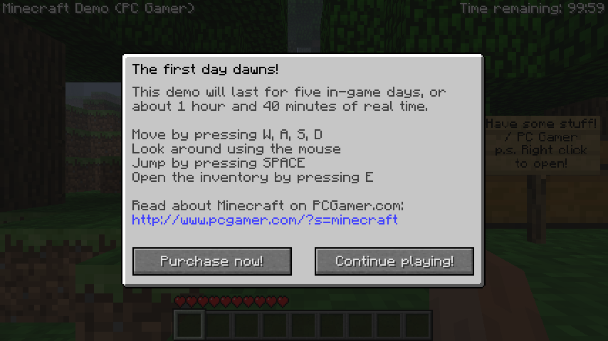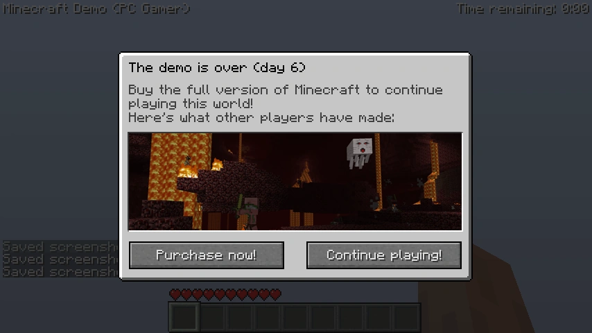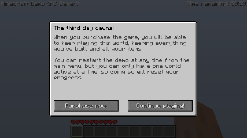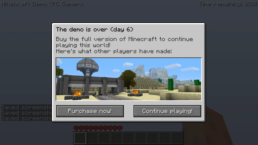 - As versões compradas do Minecraft têm código da demo, que não foi usado até a Edição Java 1.3.