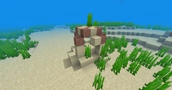 | underwater_ruin/ brick_2 | Uma estrutura pequena, com pouca altura. Consiste em tijolos de pedra colocados aleatoriamente e pedregulho musgoso. Estes 3 geram combinados entre si. |