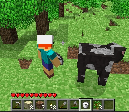 Молоко можно добыть, применив ведро к корове. Для получения молока необходимо находиться на определённом расстоянии от коровы.
