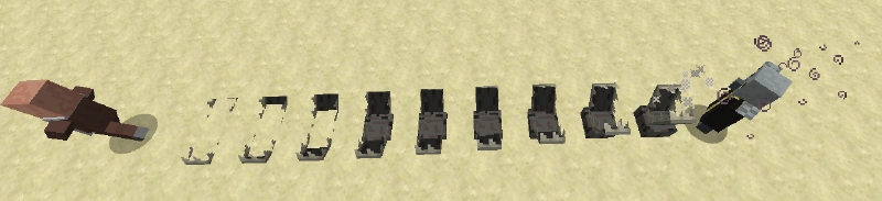 - Если вызыватель не занят сражением, он начинает перекрашивать синих овец в радиусе 16 блоков в красный цвет, воспроизводя звук, который он воспроизводит во время призыва чего-то и испуская оранжевые частицы магии.