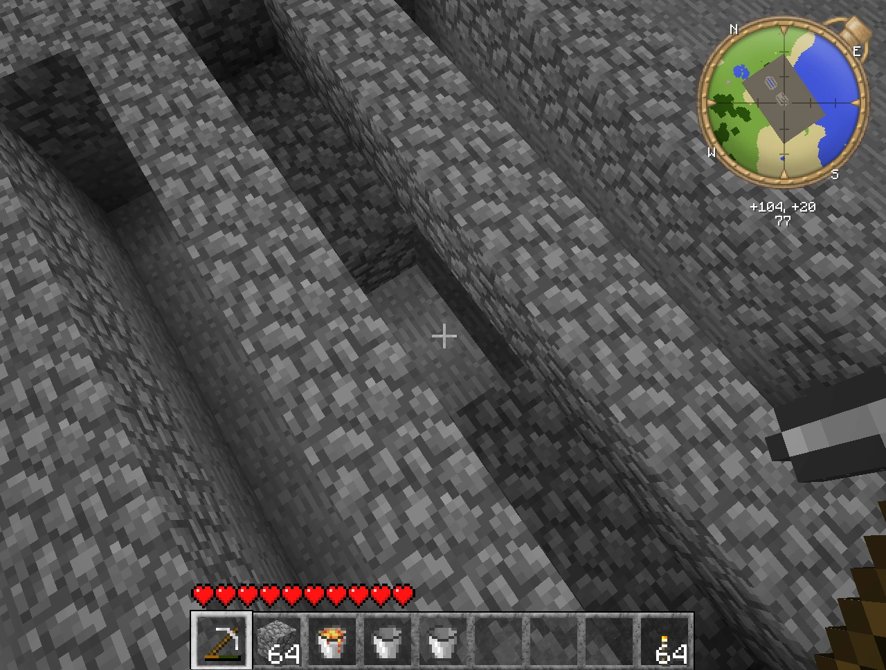 Этап 5. Убираем весь материал из под воды. Внимание! Если у вас вода будет литься иначе, чем на скриншоте — ничего не получится. Красная пыль закладывается в наружные выемки, и на неё заливается лава. Необходимо заливать лаву поверх красной пыли, чтобы лава растекалась.