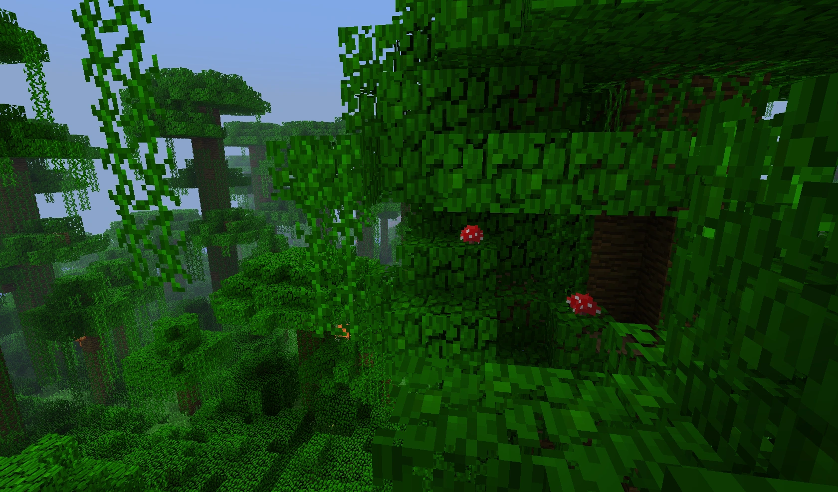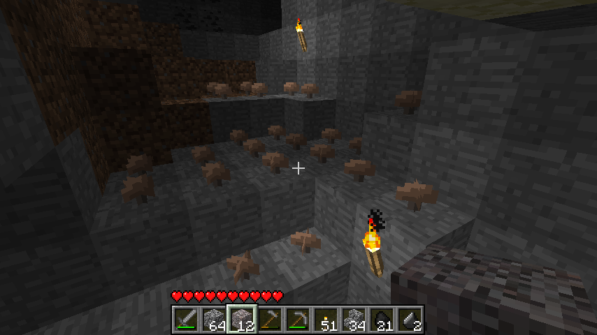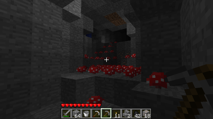 | 1.6 | Грибы стали медленно распространяться, что позволяет строить грибные фермы. Неограниченный рост грибов приводил со временем к тому, что пещеры заполонялись грибами, особенно на серверах. | ||||