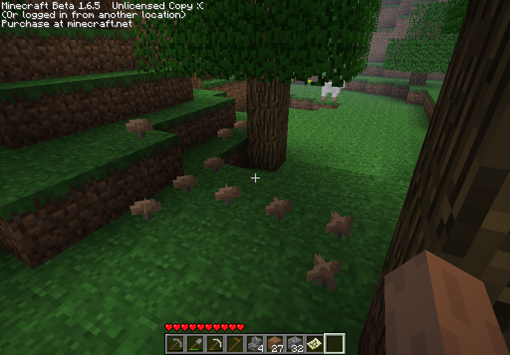 | 0.0.20 | Грибы добавлены в игру. Они не имели никакого практического применения и использовались только в качестве декораций. | ||||