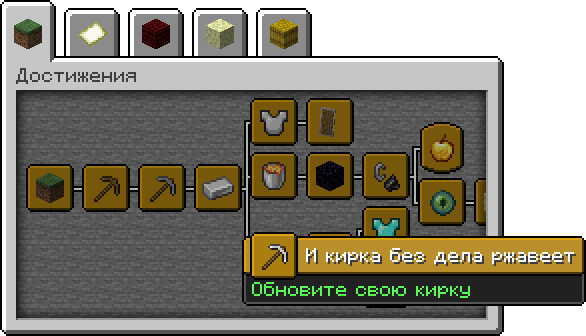 Достижения во вкладке «Minecraft»
