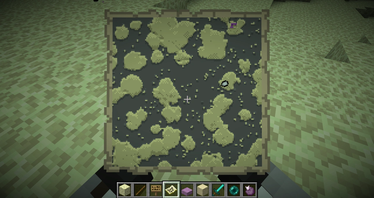 Расширенная карта | [только для Bedrock Edition] При добавлении 8 листов бумаги к карте мы получаем карту с меньшим масштабом. |