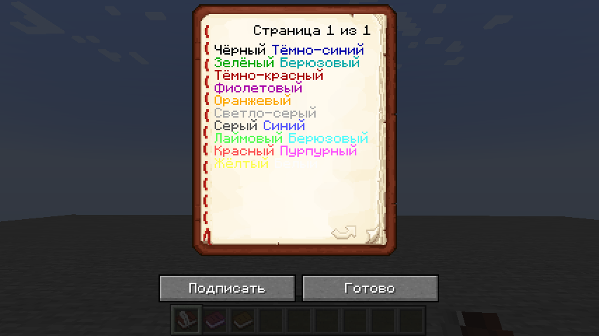 | 1.7.2 | 13w36a | Книгу с пером теперь можно совместить с написанной книгой для её копирования. | |||