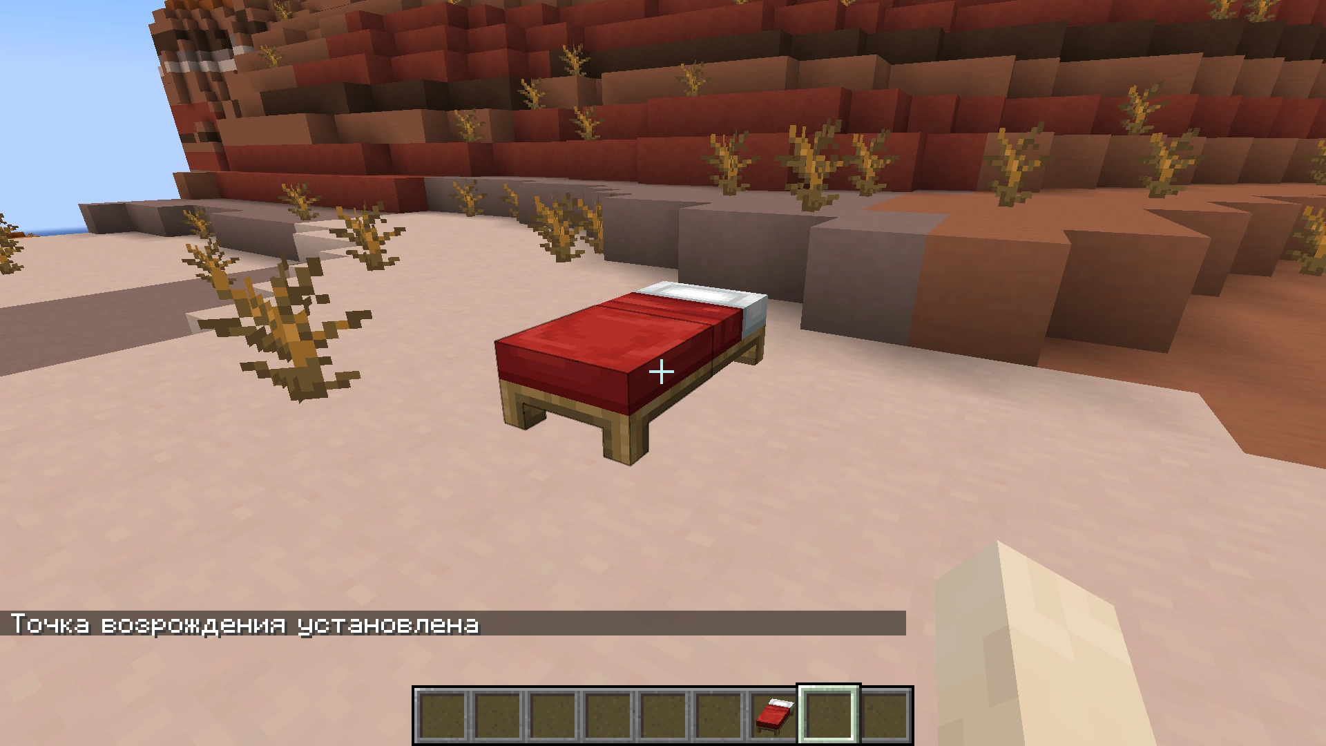 • Игрок имеет доступ к кровати, на которой установлена точка возрождения.