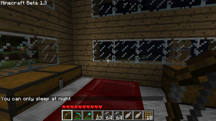 - Если в одиночной игре игрок быстро нажмет ПКМ на кровати несколько раз подряд, то получит сообщение «This bed is occupied».