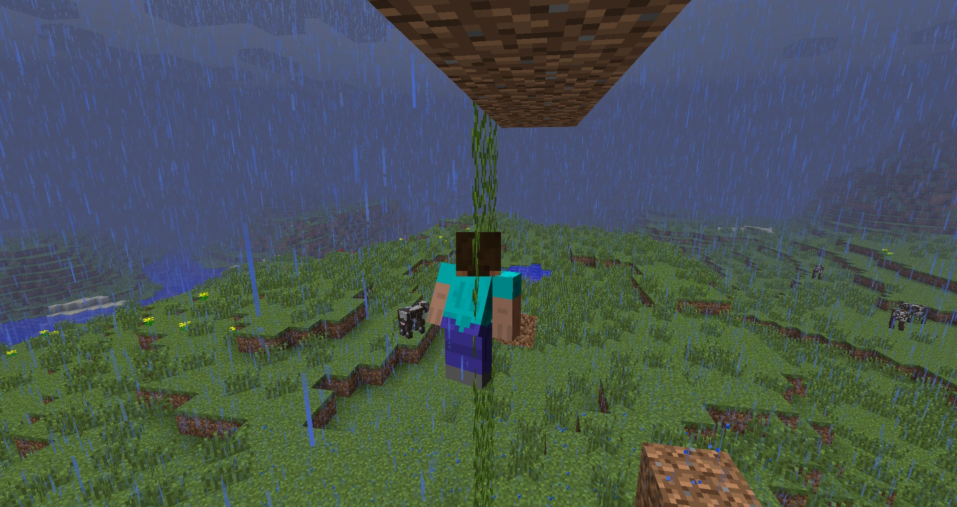 - Если блок выше это воздух, и если вокруг лианы в области 9*9*3 меньше 4 лиан, то с 50-процентной вероятностью лиана распространится вверх, если на него или его сторону можно разместить блок.