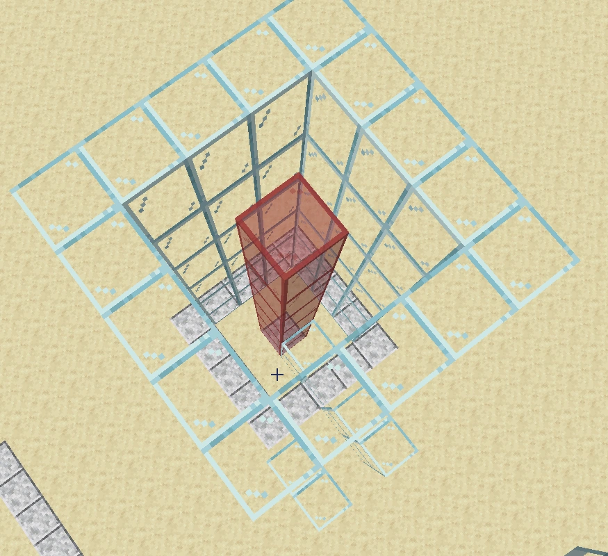 - Внизу располагается симметричный поток, создающий диагональное течение, толкающее мобов в столб