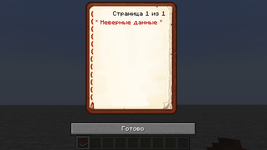 | 1.2 | Написанные книги добавлены в игру. В отличие от Java издания, на экране помещается сразу 2 страницы. | ||||