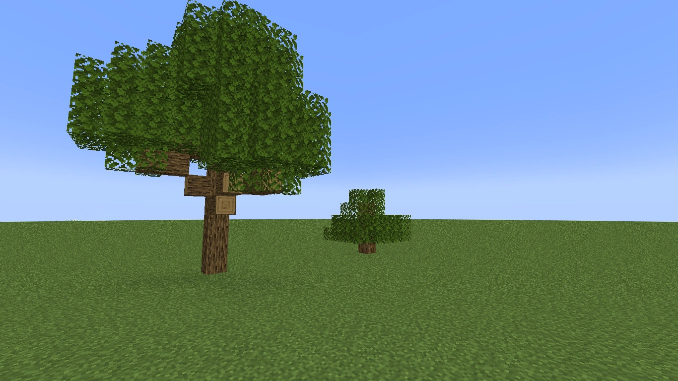 Деревья — структуры, генерация которых зависит от биомов. Также эти структуры можно выращивать из саженцев, получаемых с самих деревьев или из сундуков. В основном деревья состоят из блоков листвы и древесины разных видов, но на некоторых можно встретить и другие виды блоков, такие как лианы (болотные и джунглевые деревья), какао-бобы, грибы (на поваленных деревьях), пчелиное гнездо (дуб, берёза или вишневое дерево), на мангровых деревьях — мангровые корни, мангровый росток и мшистый покров. Каждый тип дерева имеет несколько вариантов роста — маленький, средний и большой.