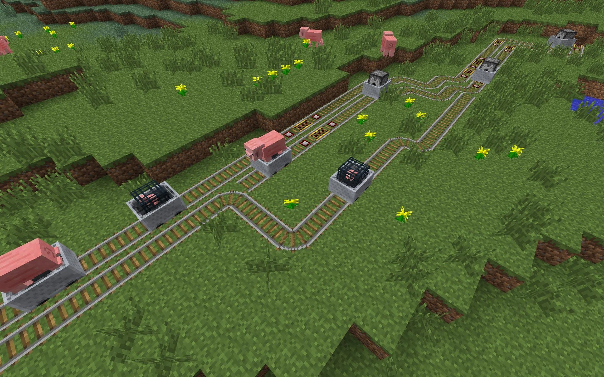 Вагонетки с раздатчиком и вагонетка со спаунером.