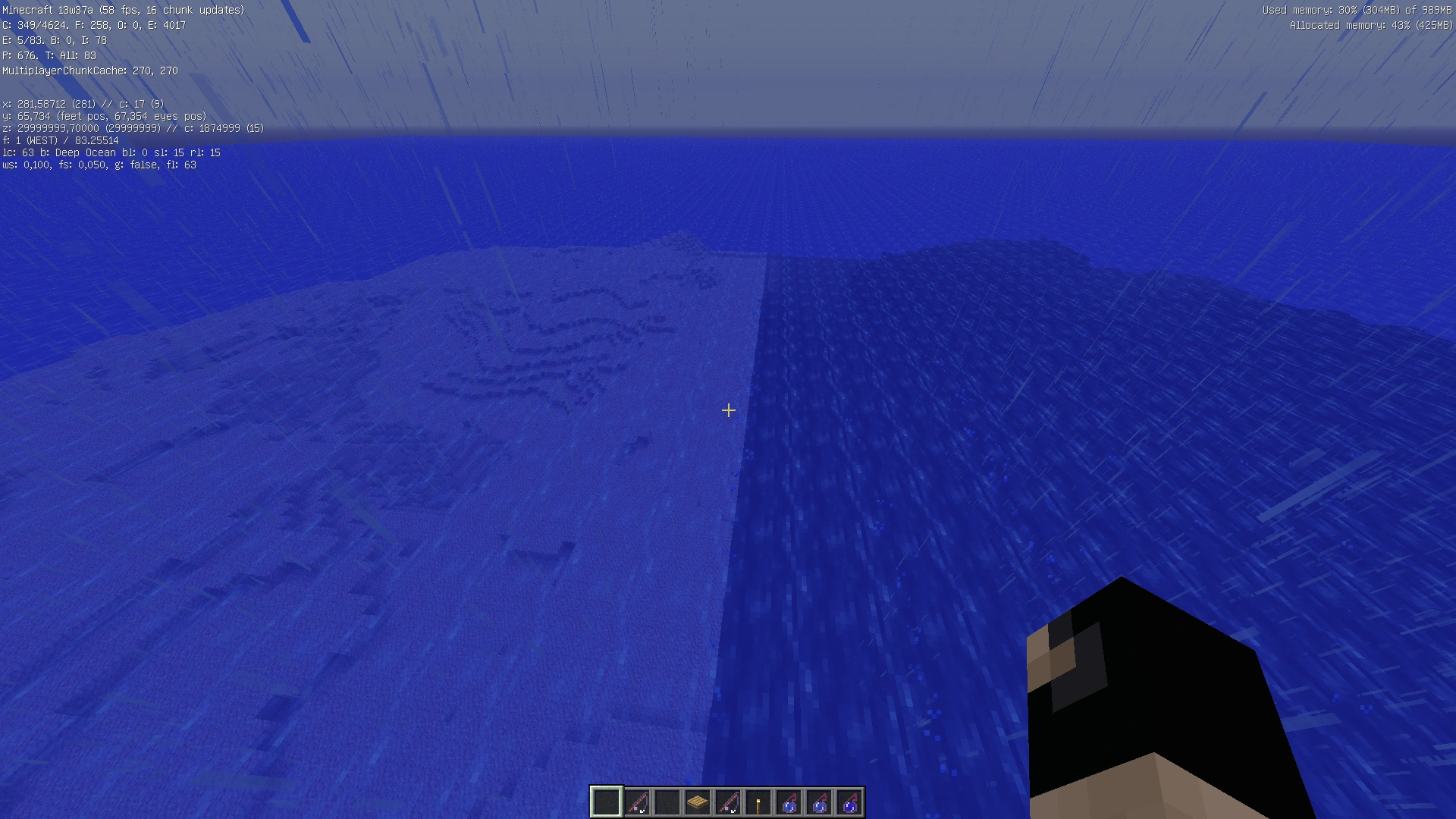 Сегодня летал, и наткнулся на странную генерацию мира. Должно быть одна из редких генераций тайги. http://s5.uploads.ru/tEZ9M.png 19max99 19:59, 7 сентября 2013 (UTC)