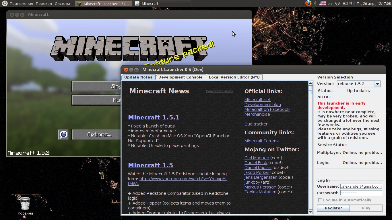 - Официальный лаунчер 1.6.2 требует авторизации т.е. купленную игру. Выходы ищите самостоятельно, на вики вам их не подскажут т.к. это нарушает правила--Denai 08:16, 1 августа 2013 (UTC)