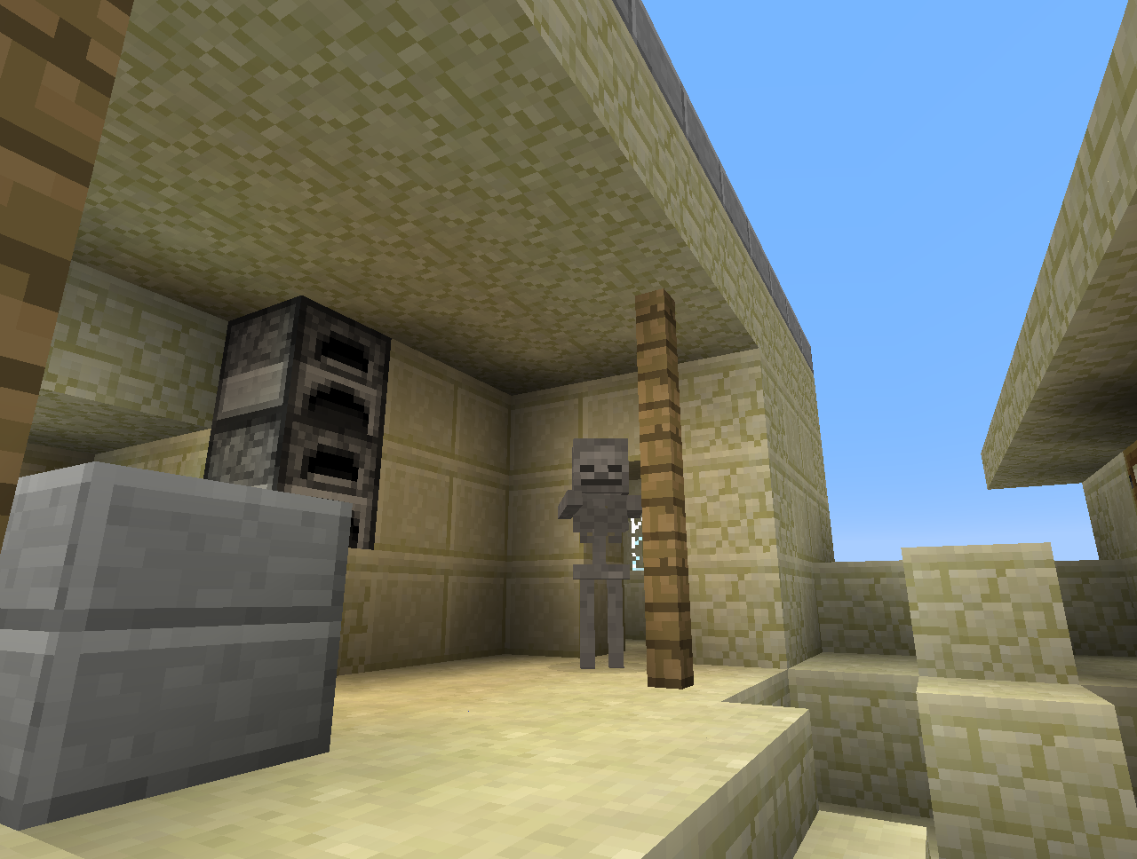 Скелеты умнее, чем зомби. Если день, то они прячутся под деревом в любом случае, если игрок в зоне видимости скелета, но вне зоны досягаемости лука, то скелет не выйдет из-под дерева, как зомби, а продолжит стоять --Rybakov 15:00, 23 мая 2012 (UTC)