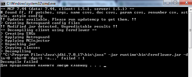 File "C:\Documents and Settings\Admin\Application Data\.minecraft\MCP\runtime\commands.py", line 710, in checkjava