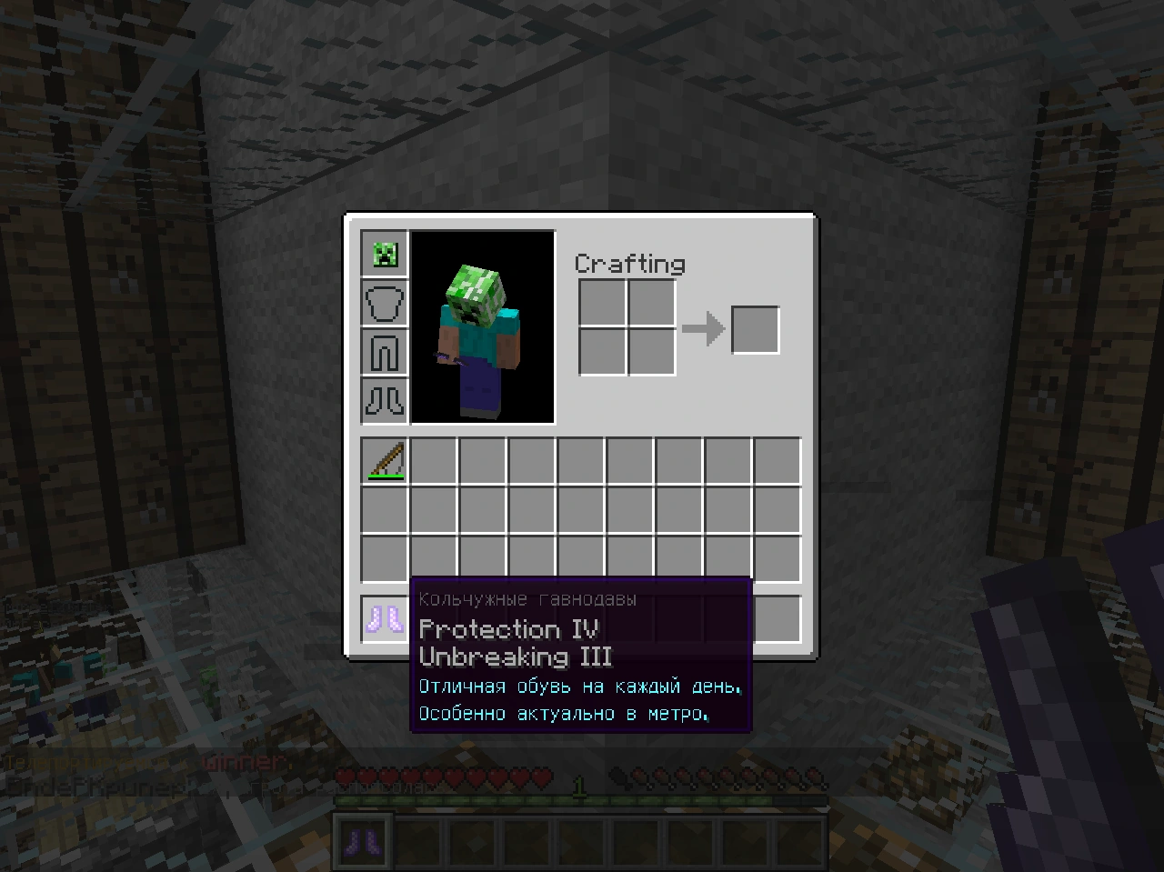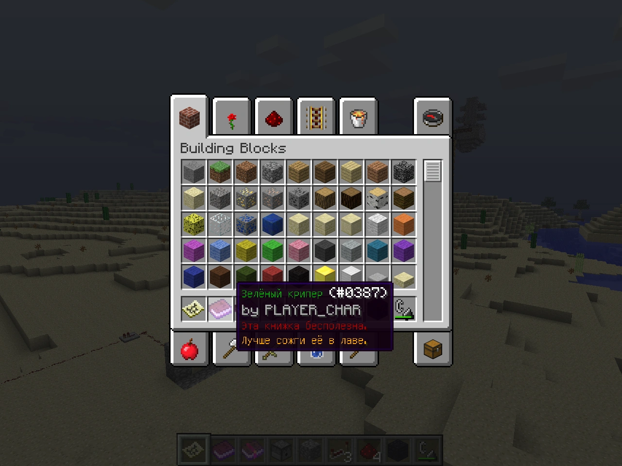 "Я имел ввиду чтоб скин для мультиплеера был. Про ресурспак я это давно знал. В синглплеер можно и без скина играть, хотя да, поставлю. Интересно, а в демке можно зайти на сервер? Скорей всего, неа. И ещё я считаю, что платить 800 рублей Джебу и Диннербону за код в стиле тяп-ляп с 99 багами ради какого-то там скина на сервере - нет, ну правда уже перебор. Могли хотя бы баги со скриншотом в инвентаре, дюпом цветка в горшке, стрелами, вбивающимися в землю 2 и более раз, неправильной прорисовкой льда и глюкнутой картинкой горе-кактуса в креативе исправить, согласитесь же. Skeleton8625 (обсуждение) 17:48, 25 октября 2013 (UTC)"