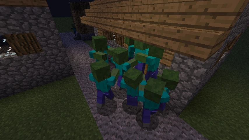 - Если в режиме Creative призвать рядом с домом жителя группу зомби, то они сразу начинают осаду.