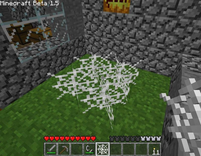 - Паутина уменьшает урон от динамита, если игрок находится за или внутри неё.