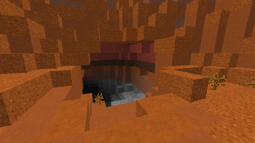 Красный песчаник генерируется у входа в пещеры в пустоши.