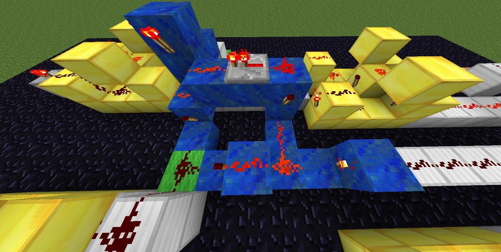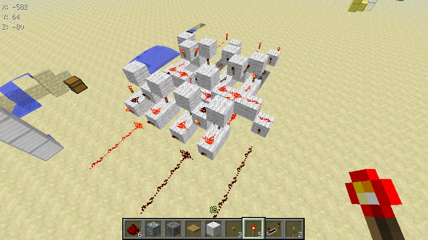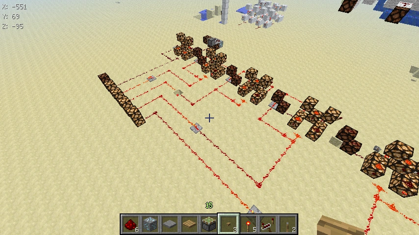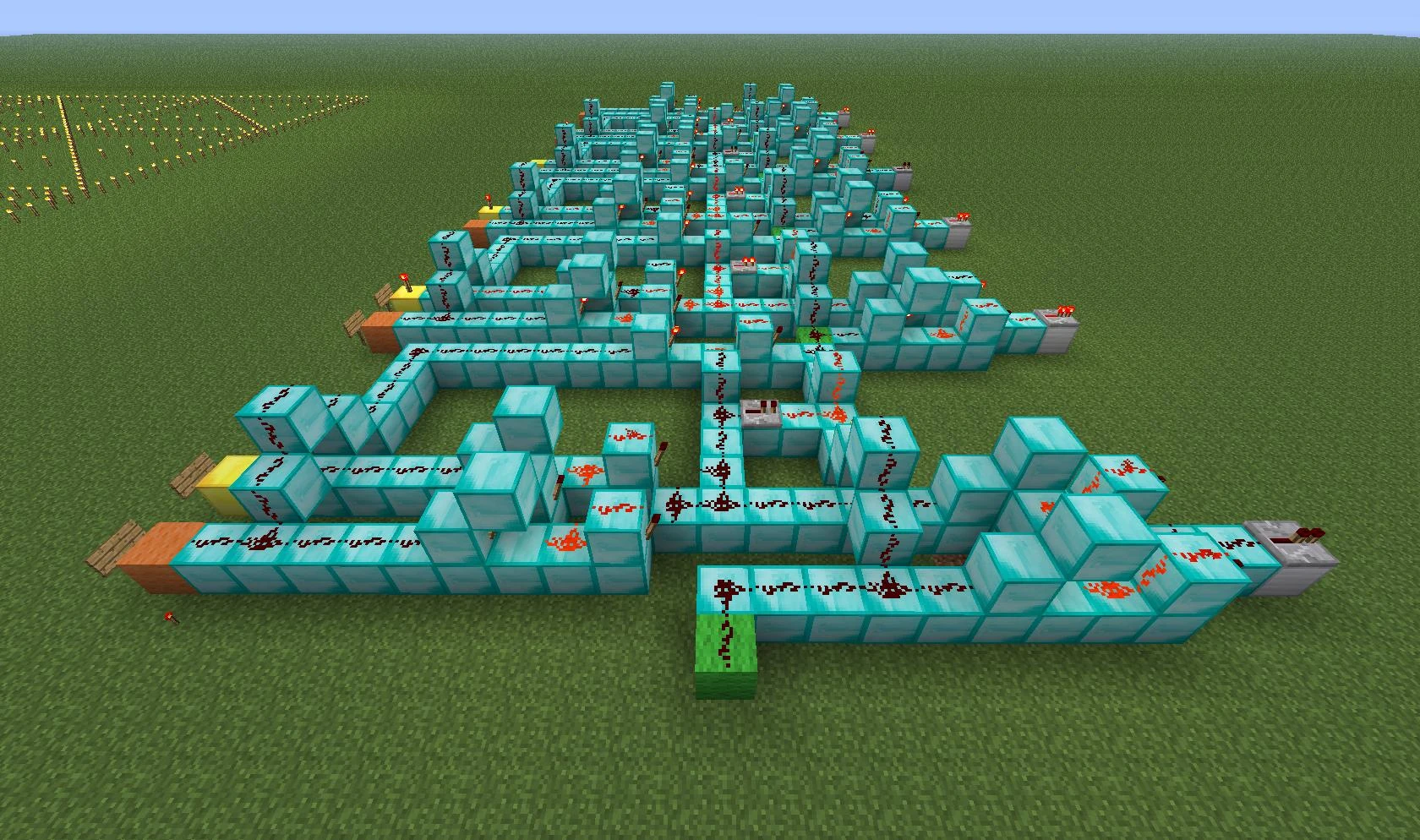Данный механизм может использоваться во многих строениях, будь то посадочная полоса аэропорта, вывеска магазинчика на вашем любимом SMP сервере, станция метро. Даже ваше эпичное строение будет по особому выделяться ночью переливанием красных факелов. Факелы будут по очереди зажигаться «волной». Схема простейшая и основана на повторителях и тактовых генераторах. Приступаем к монтажу.