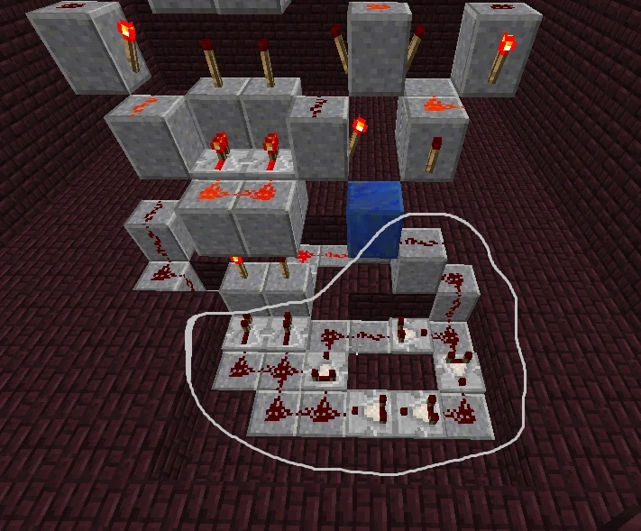 - Легко расширять и менять код, переставляя факелы красного камня