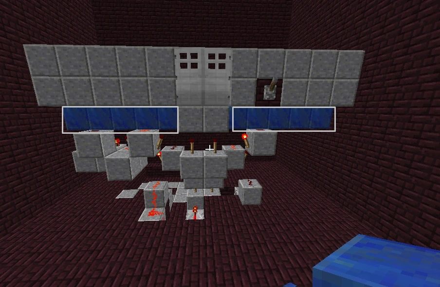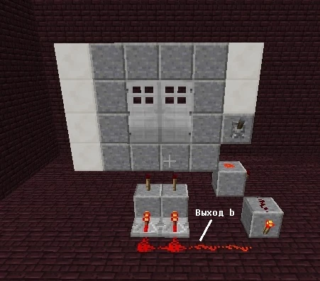 - Если играть в многопользовательской игре, то зайдя внутрь вас могут закрыть (сбив код снаружи). Чтобы избежать такого недоразумения, подключите к первому входу (куда подключен код) кнопку и проведите её внутрь помещения. Это будет экстренная кнопка.