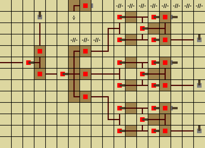 Если рычагов вам не хватает, то их можно добавить по аналогии с остальными (на схеме места добавления обозначены знаком «-//-»). Но не забывайте о максимальной длине провода (15 клеток).