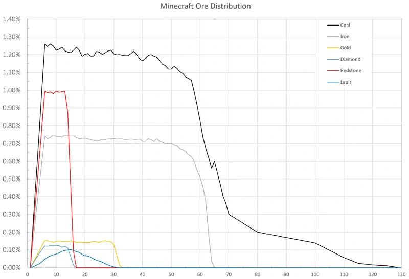 Этот график показывает фактическое количество руд, найденных в относительно небольшом, но неиспользованном мире по состоянию на 1.12.2
