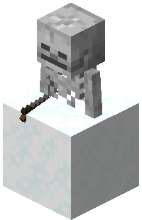Скелеты также не получают урон от замерзания в рыхлом снеге, однако, если они оказались внутри него, они сразу же начинают трястись и примерно через 20 секунд, если остались в рыхлом снеге, превращаются в зимогоров. (Подобно кадаврам – зомби – утопленникам).