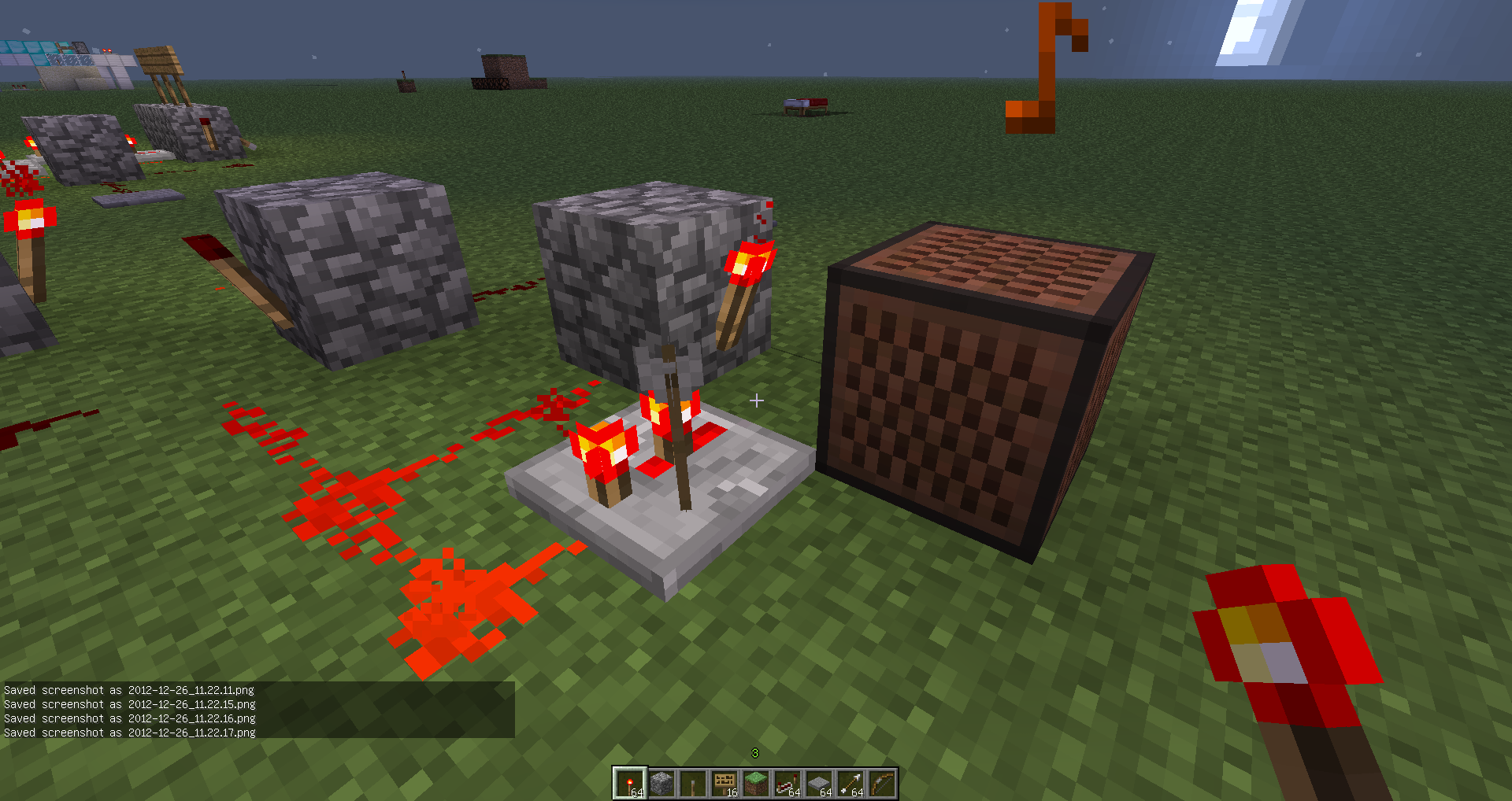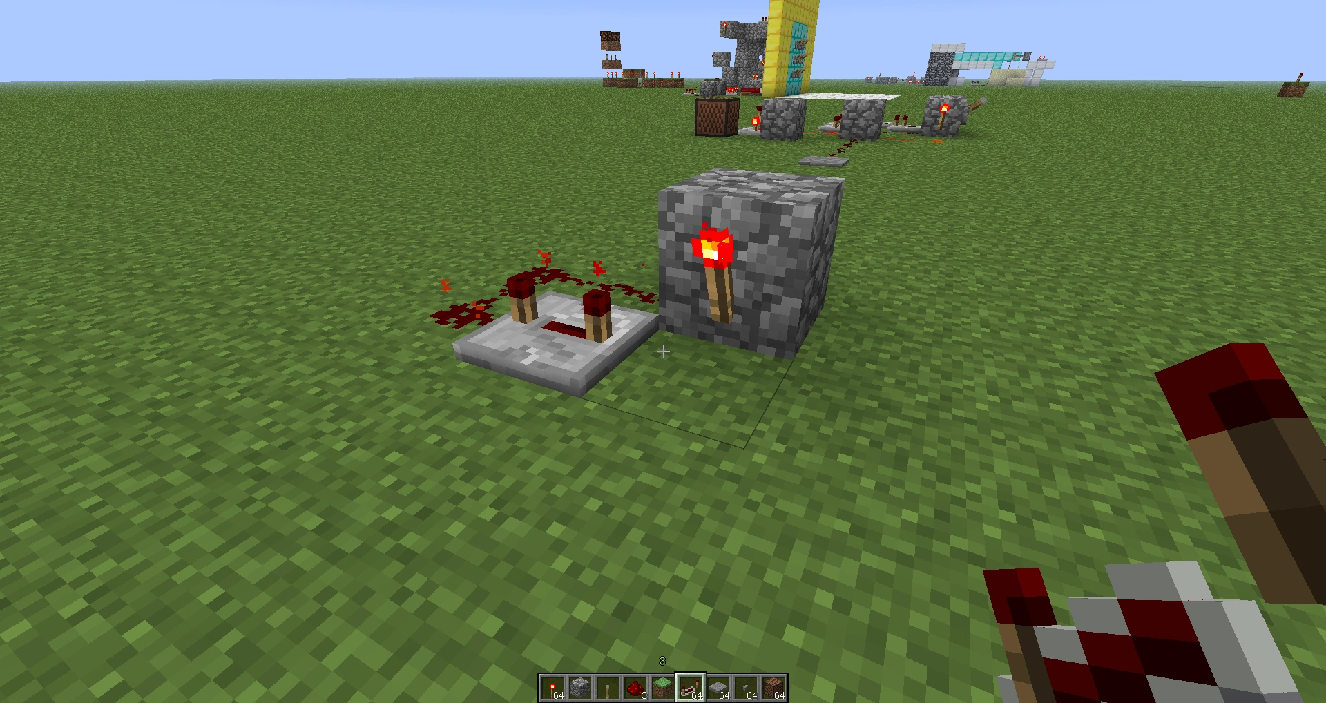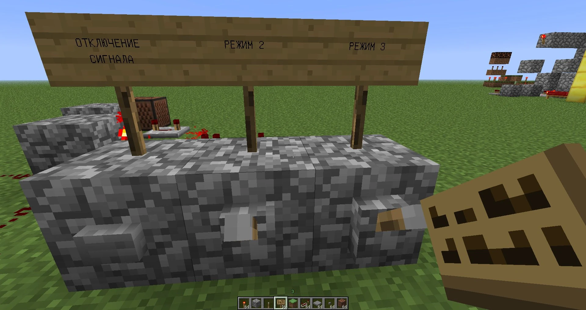 - Любой твёрдый блок, проводящий сигнал красного камня — 5 штук;