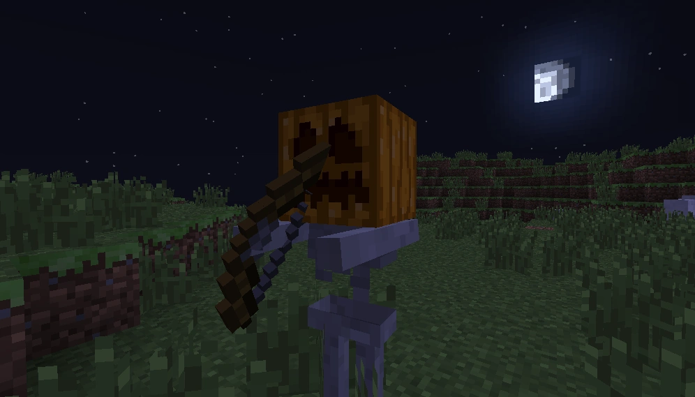 - С версии 1.4.2 на Хеллоуин (31 октября по часам компьютера) скелеты могут появиться с тыквами или светильниками Джека на головах.