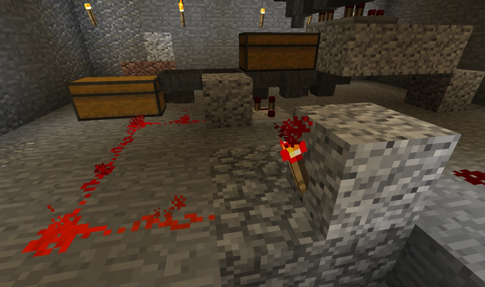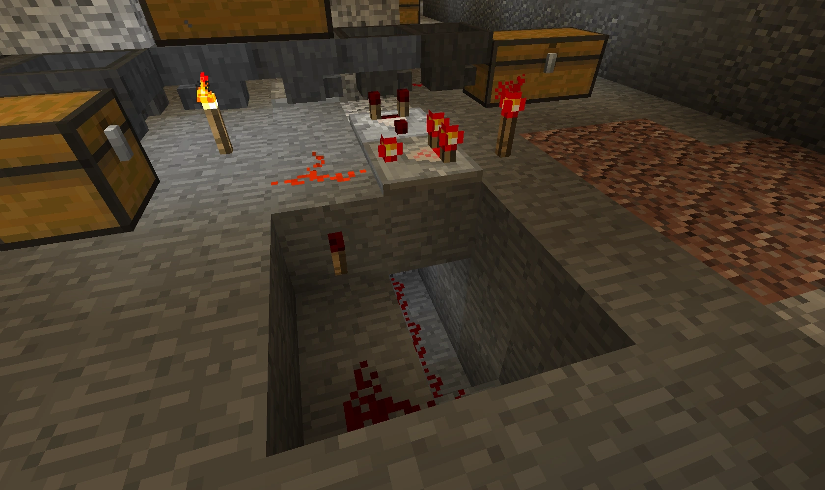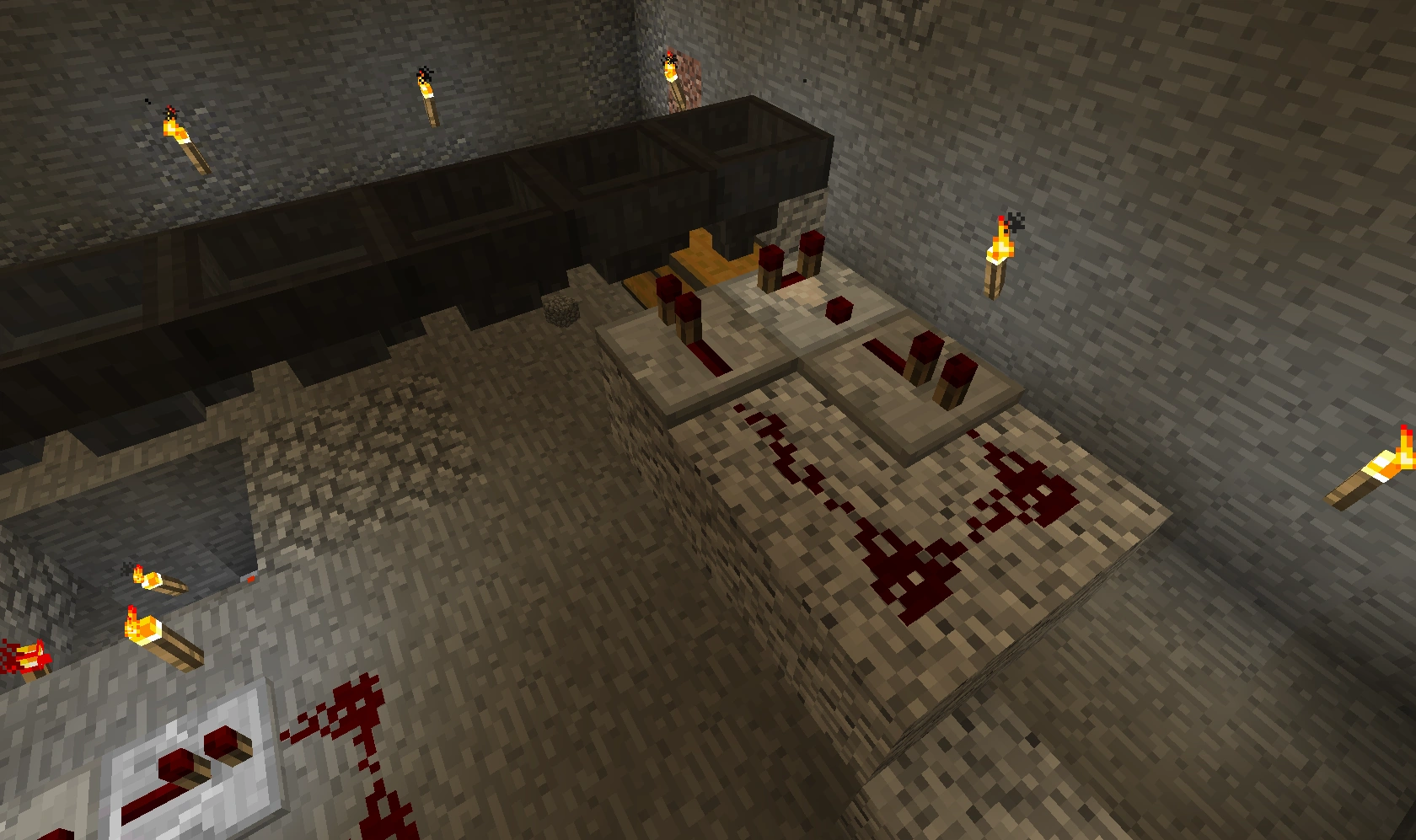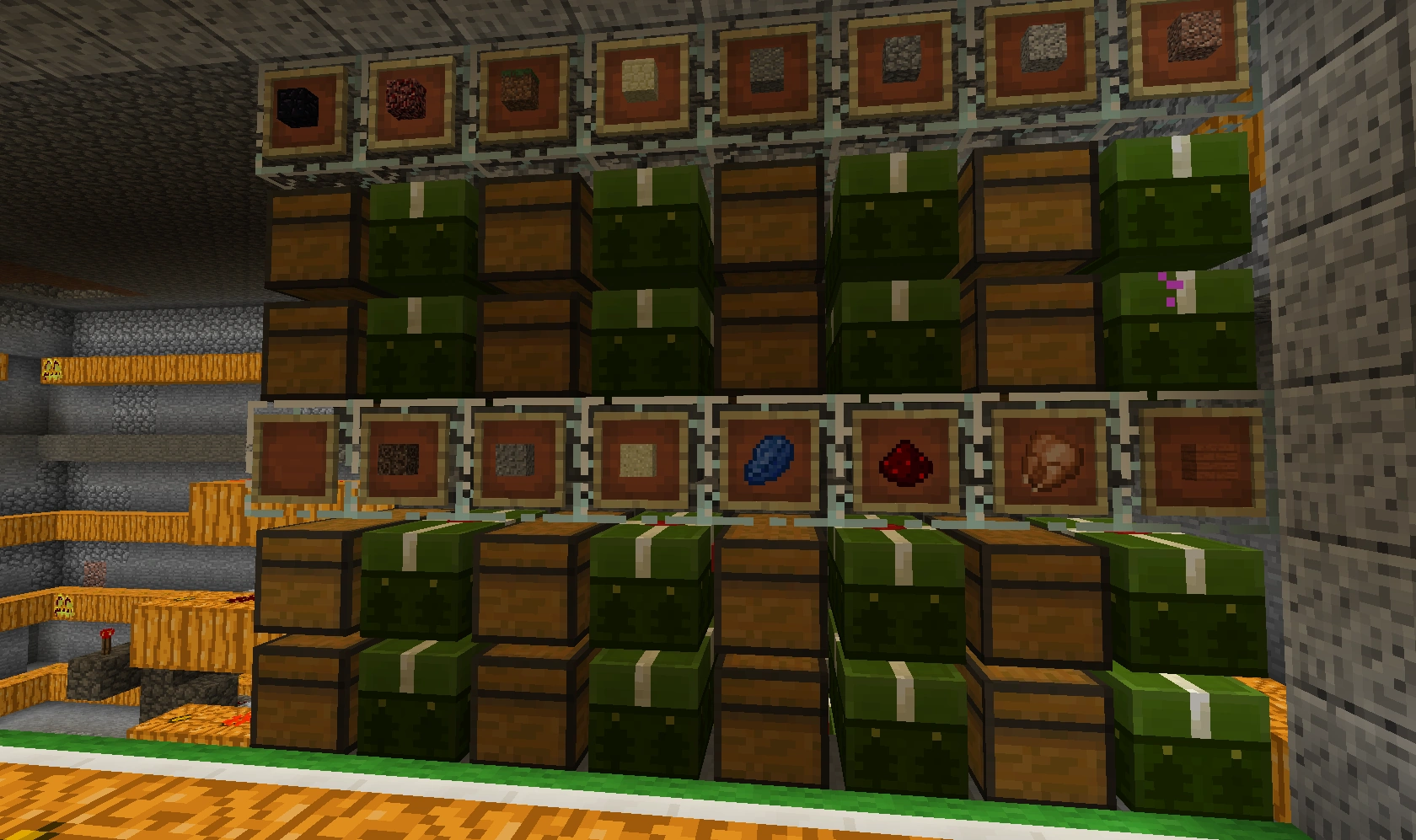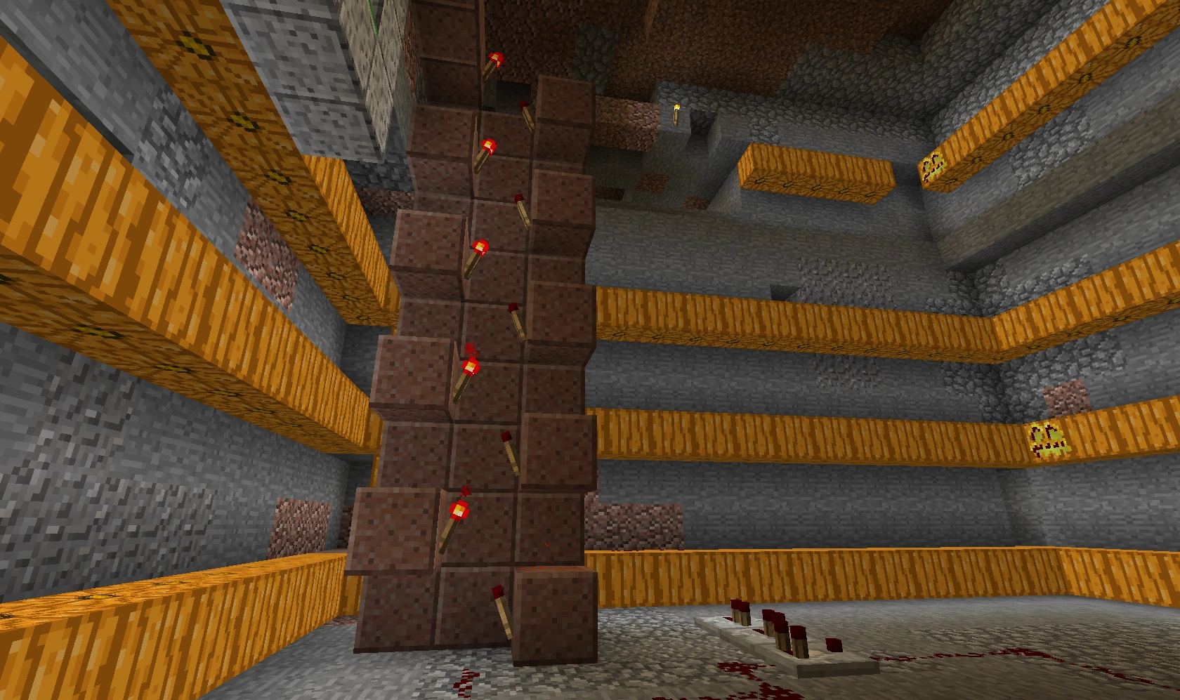 551 Кб | Общий вид на автоматическую ферму пшеницы и моркови. Слева сами фермы, справа внизу триггеры-счётчик, справа вверху - однотактный таймер |