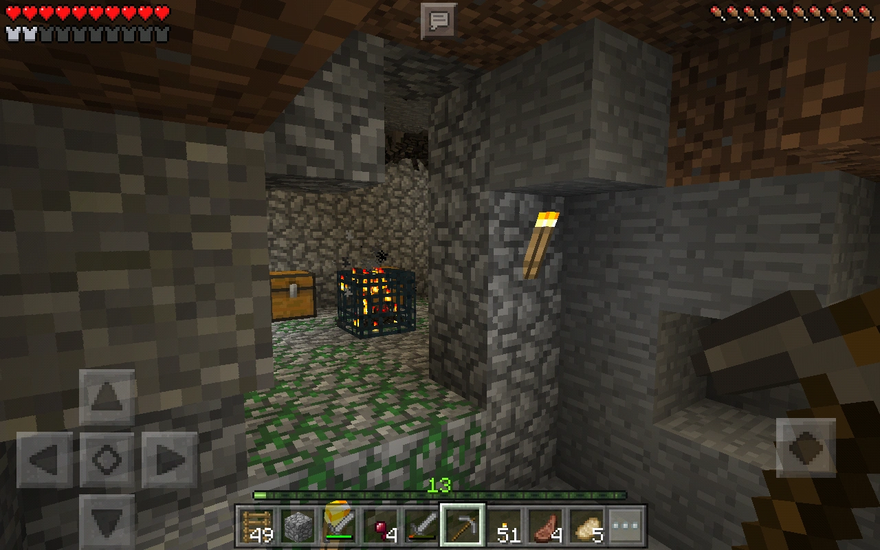 - Танк. Необходимы хорошая броня, меч (лучше — алмазный и лучше) и факелы. Прокопайте рядом с сокровищницей небольшую полость, куда вы сможете спрятаться. Далее прыгайте в сокровищницу и, не обращая внимание на мобов, ставьте факел прямо на спаунер. После этого либо добиваете оставшихся противников, либо убегайте в заранее сделанную полость для регенерации здоровья.