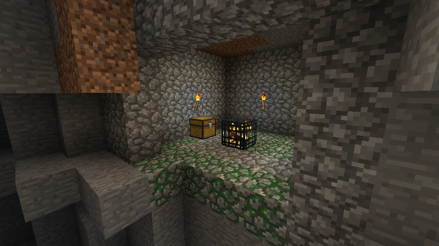 - Изредка могут сгенерироваться двойные сокровищницы в четыре сундука и два спаунера — сначала генерируется первая сокровищница, потом у этой «полости» другая. Стена первой сокровищницы удаляется, во второй сокровищнице в стене проделывается вход в первую.