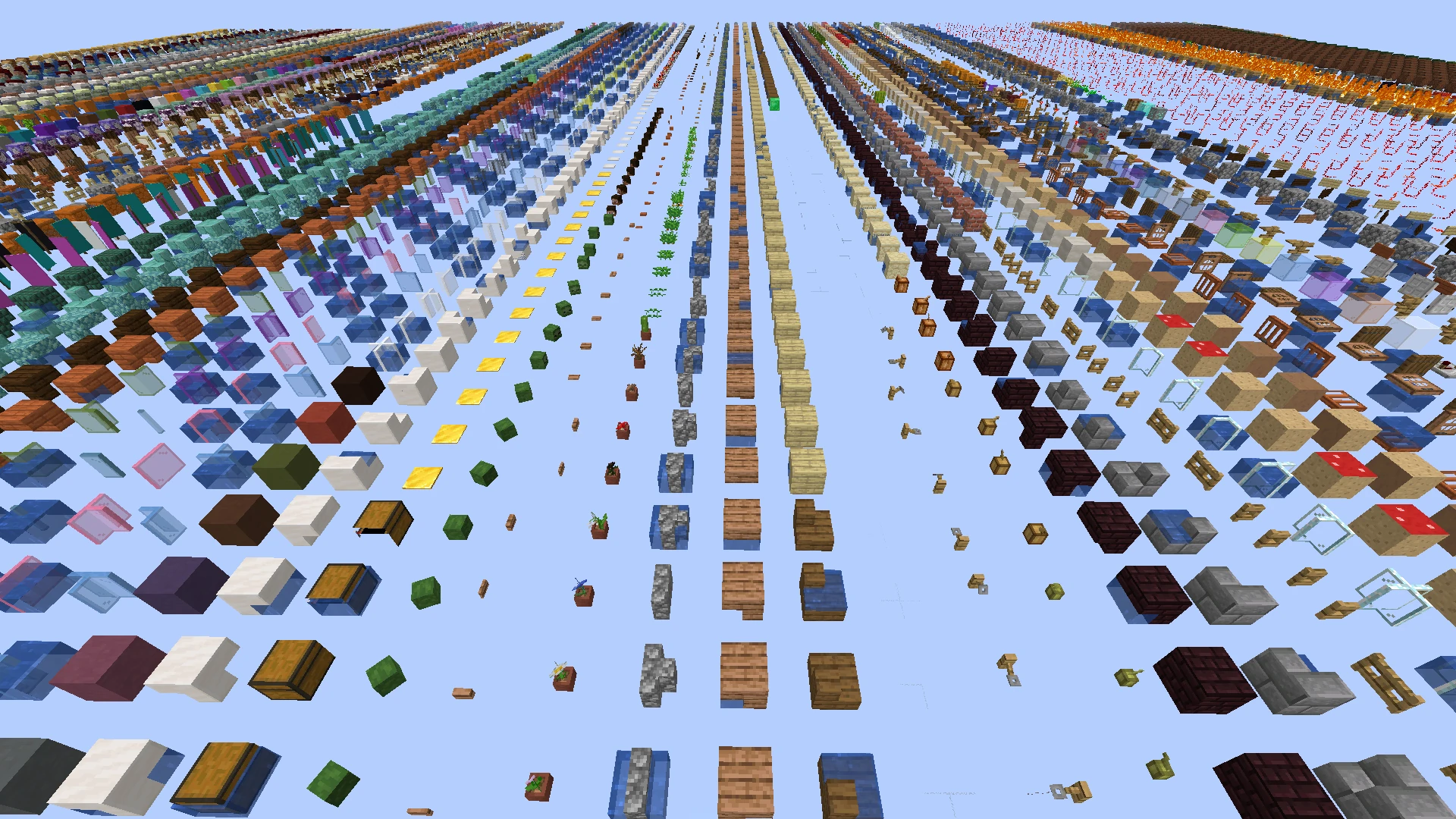 | Режим отладки[1] | Этот тип генерации можно выбрать, если зажать ⇧ Левый Shift при выборе типа мира. Мир содержит все блоки, существующие в игре, во всех возможных вариациях. |