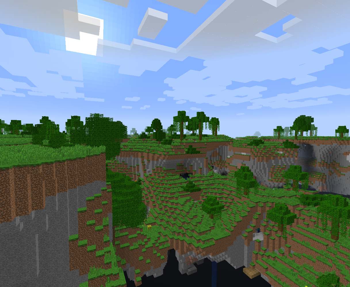 | Обычный | Обычный тип генерации мира. Ландшафт странный, генерируются множество ям разных форм глубиной в 1-2 блока. |