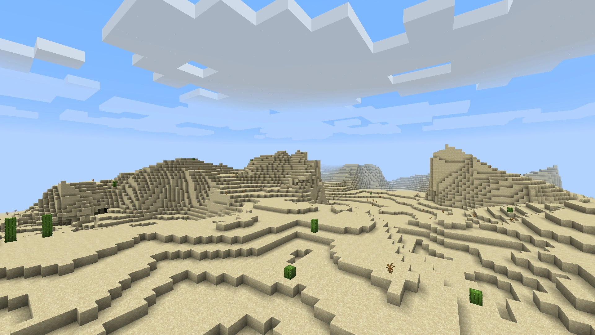 Similar to the modified badlands plateau, the modified wooded badlands plateau had a weathered appearance and featured smaller plateaus with more erratic terrain, allowing for significantly fewer oak trees to grow at the highest layers. Eroded badlands replaced the usual thin desert border that this biome variant shared with other biomes.