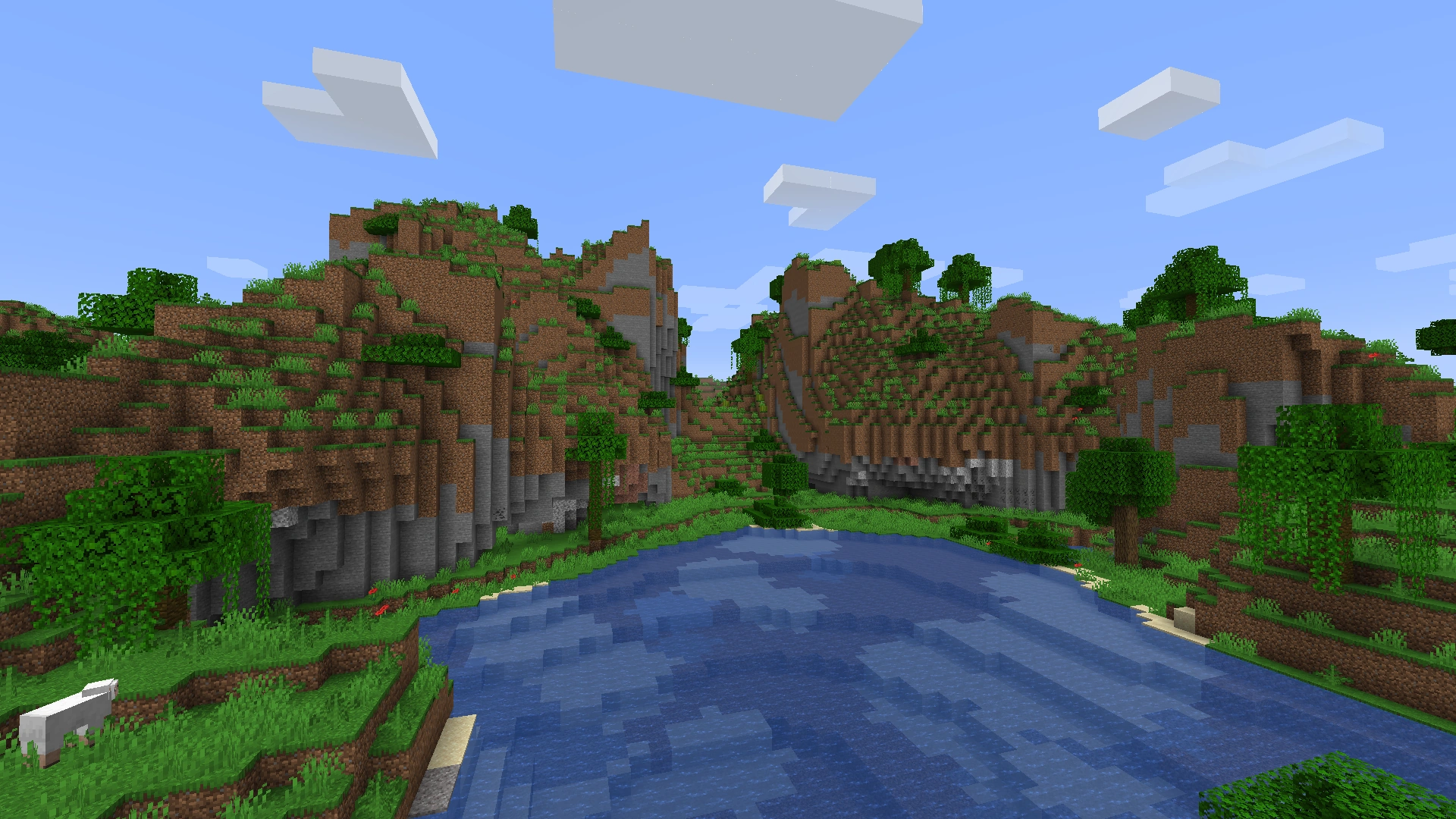 Rivers generated across all land biomes excluding areas of oceans. Frozen rivers replaced rivers in regular snowy plains.