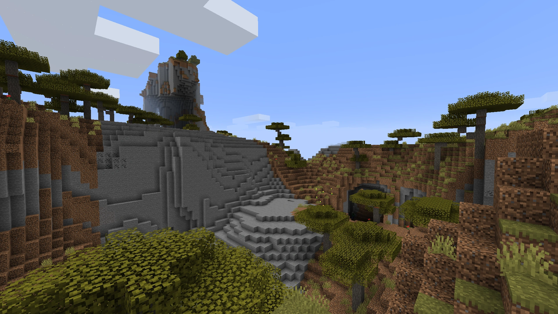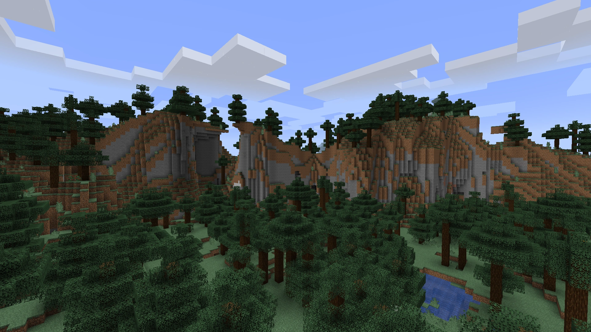 - Редкий массив холодных биомов: тайга с гигантскими деревьями (1,6 % от финальной локации).