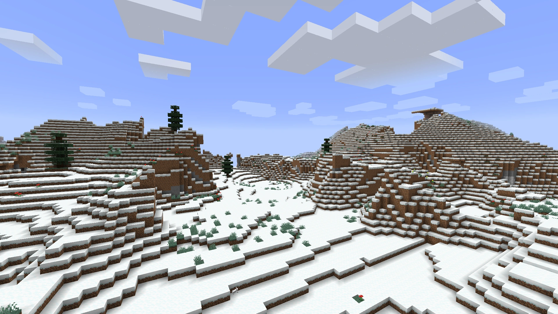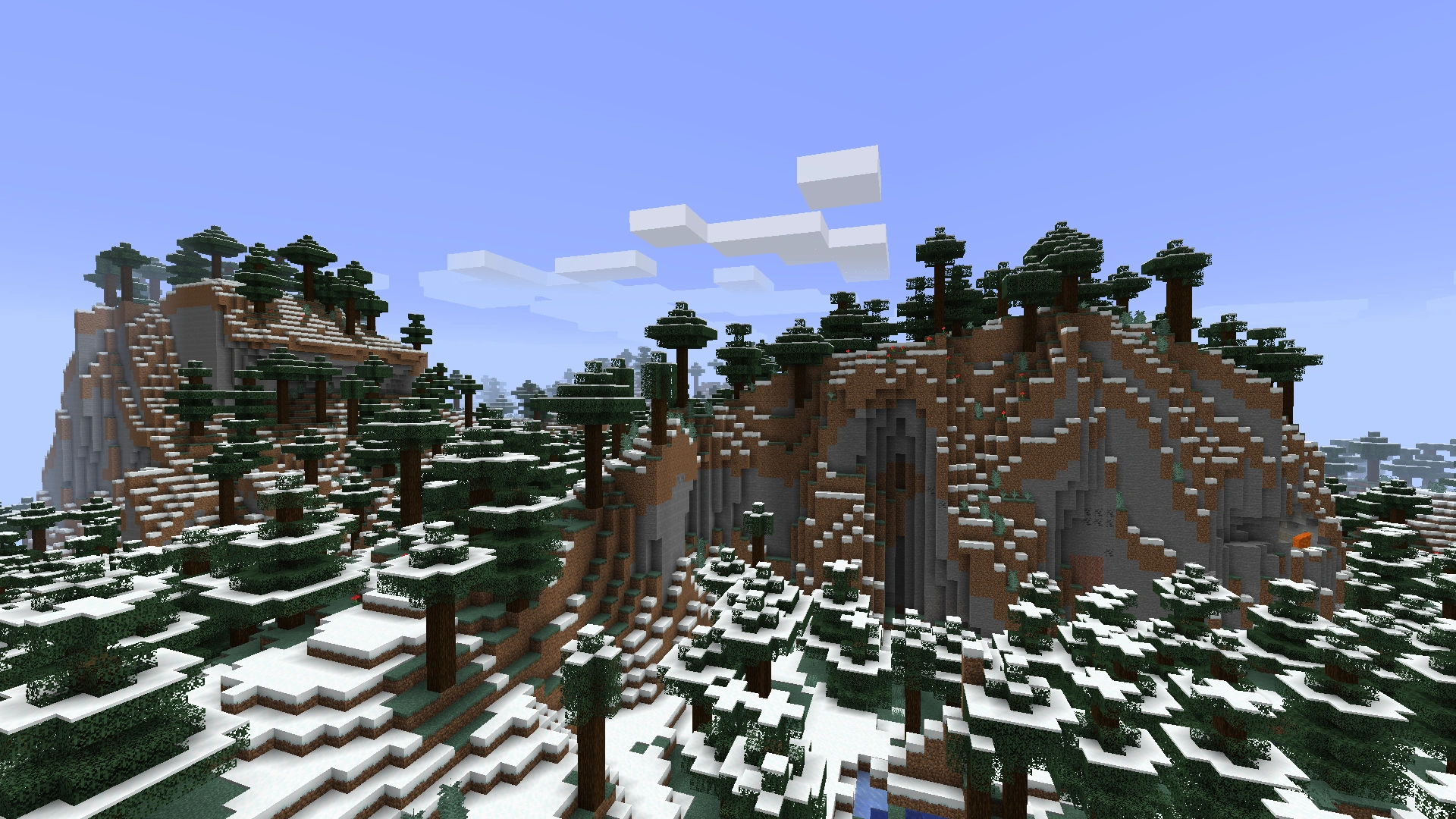- Массив снежных биомов: заснеженные равнины (3 раза), заснеженная тайга.