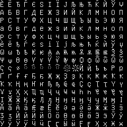 - Можно попробовать нарисовать алфавит в старом формате и растянуть до этого, сохранив тем самым пикселизацию. HEKP0H 11:26, 11 декабря 2011 (UTC)