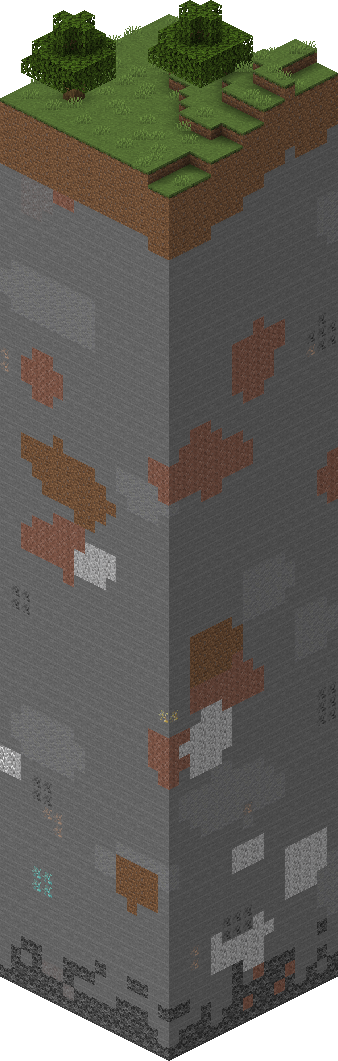 Размеры одного чанка — 16 блоков в ширину, 16 блоков в длину и 256 блоков в глубину. Это составляет 65 536 блоков. При открытии нового куска карты, генерируется и становится активным 441 чанк вокруг игрока. Чанки генерируются с помощью зерна карты, а это означает, что они будут всегда одинаковыми если вы будете использовать одно и то же зерно снова.