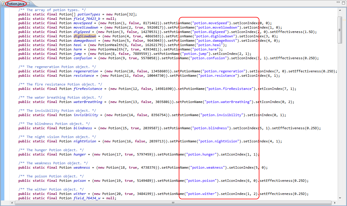 | Beta 1.9 Prerelease 4 | От игроков и мобов теперь исходят спиралевидные частицы, цвет которых зависит от активных эффектов. | ||||