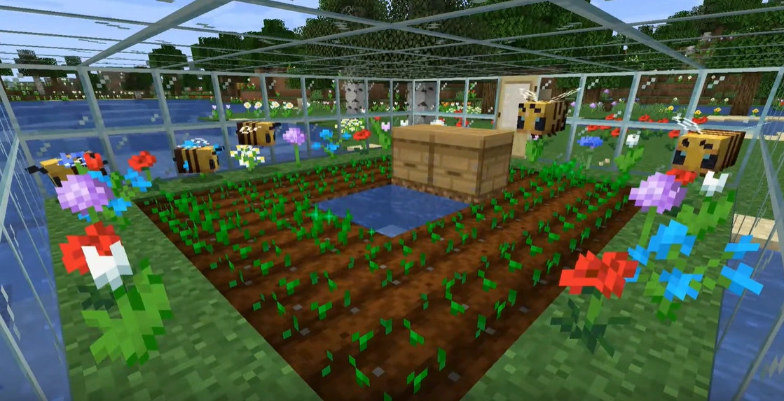- Если игрок сломает блок с пчёлами внутри, они станут агрессивными.