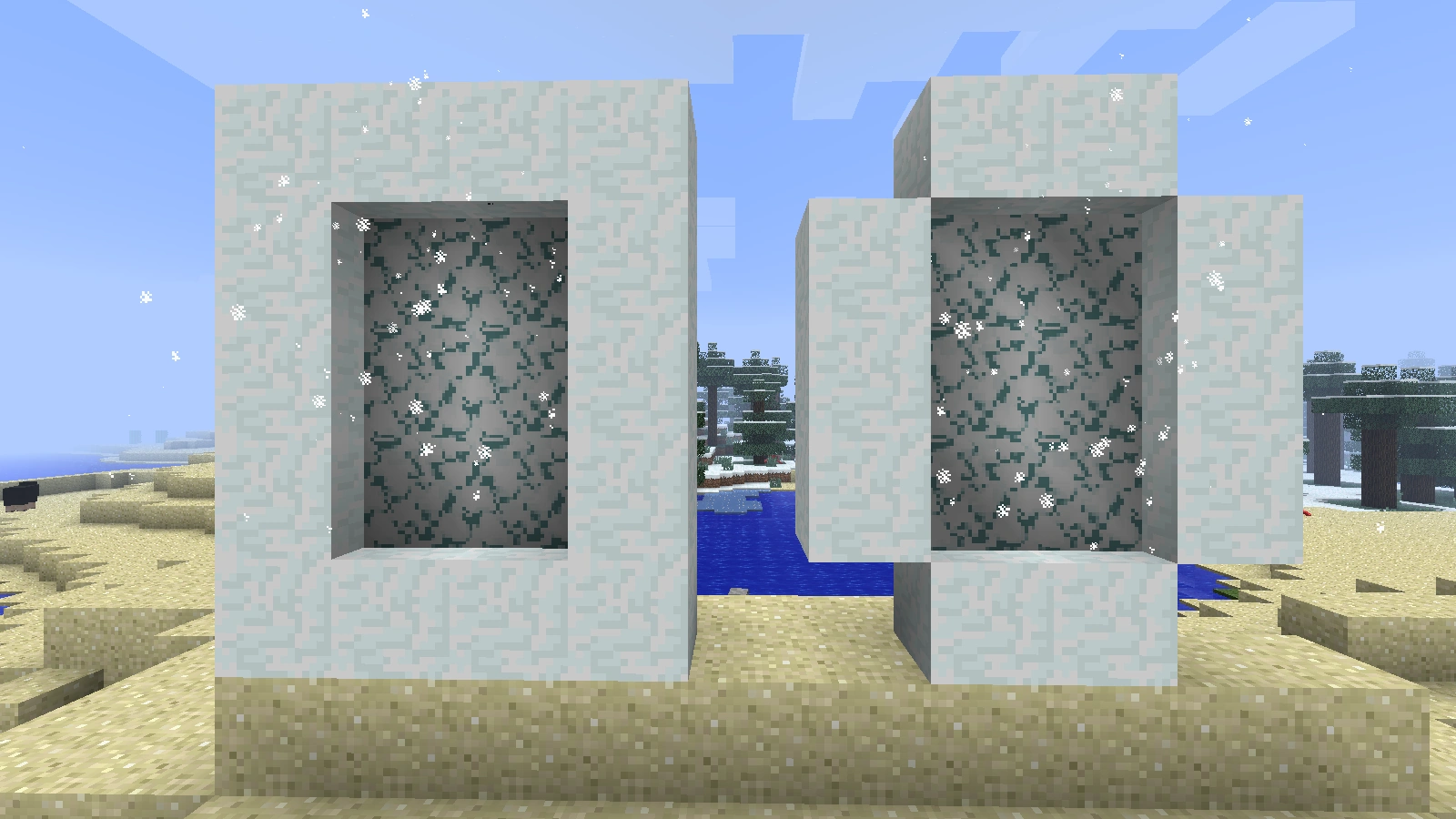 - Рамка сумеречного портала состоит из блоков предыдущего измерения, но сами блоки портала имеют цвет следующего измерения.