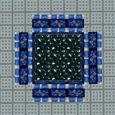 Портал Подземелья тайн строится в форме портала в Край (горизонтально) и зажигается автоматически. Важно чтобы портал строился на запад из несоединённых блоков, а на север, восток и на юг из соединённых! Состоит из собственного блока — рамка портала Подземелья тайн.