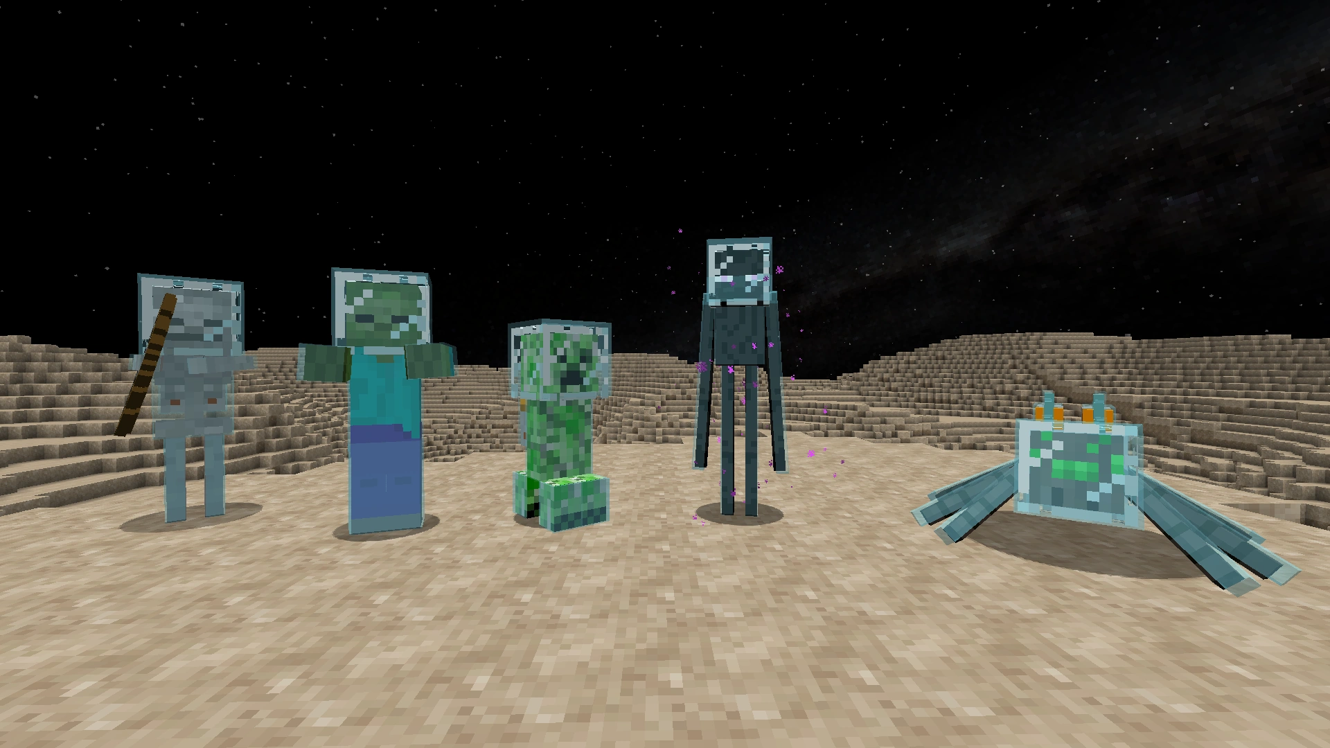 Мобы спаунятся в пещерах. На поверхности только ночью. Можно встретить: эволюционировавший зомби, эволюционировавший крипер, эволюционировавший скелет, эволюционировавший паук, Эволюционировавший странник Края.